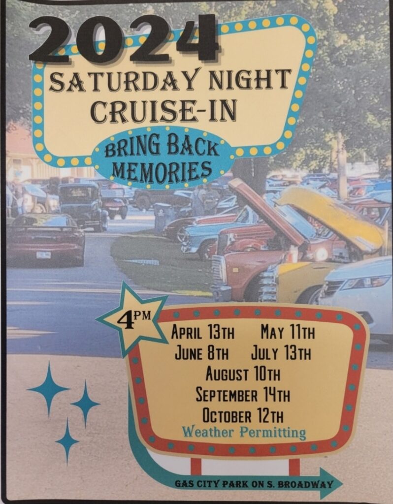 Get them Rides Shined and Ready for the Cruise in @ The Gas City Park, Bring a Chair, a buddy, your neighbor and definitely bring your appetites, Dj Spike will be playing some of your favorite music, Hope to see y’all at the “Saturday Night Cruise in” Starting at 4pm, Music at 5pm!! Cruise on & Cruise Safe Find us on Facebook @ Saturday Night Cruise in