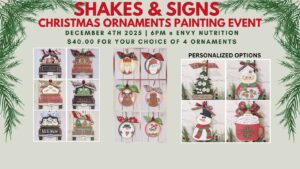 Come join us for an evening filled with fun, laughter, unforgettable memories, and yummy drinks as we create beautiful Christmas ornaments.