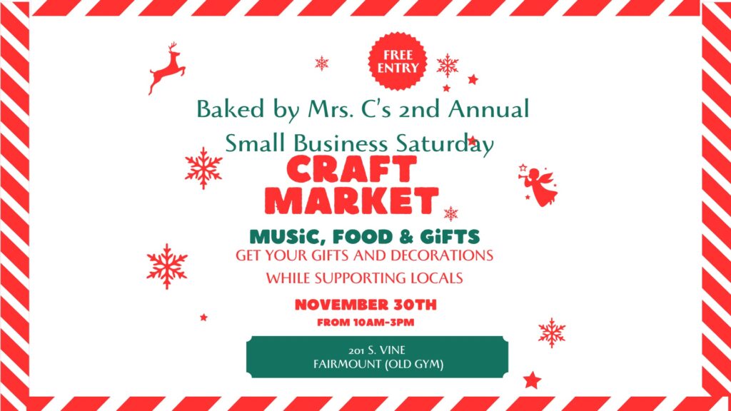 Come explore the second annual Small Business Saturday Christmas Market hosted by Baked by Mrs. C and kick off the holiday season with a curated variety of local artisans, crafters, makers and bakers.
