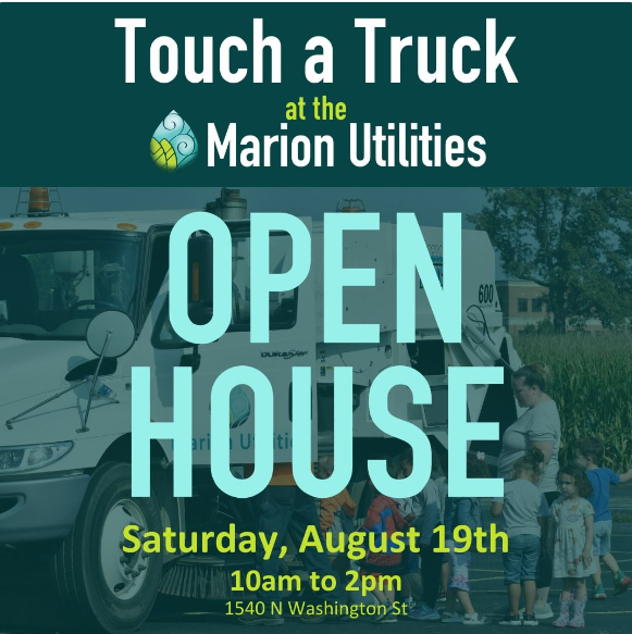 Want to experience some of the cool machines Marion Utilities uses up close? The Marion Utilities August 19th Open House will have ‘Touch-a-Truck’ stations for you or your kids to see the vehicles used at the plant!