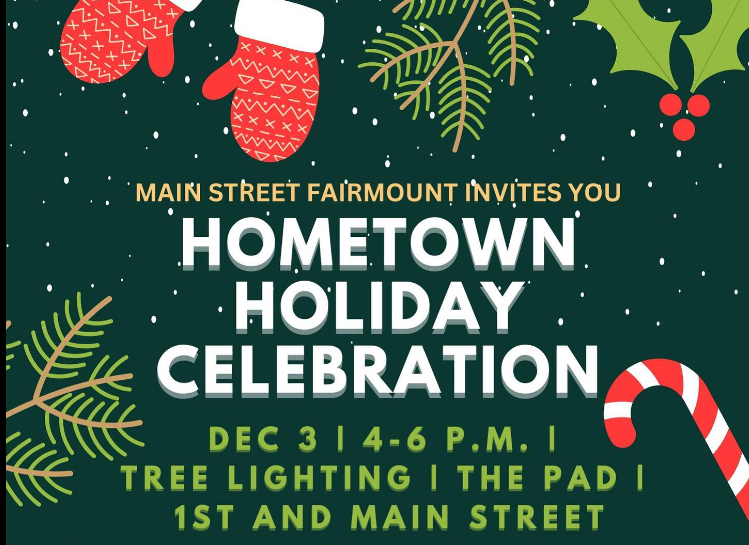 Main Street Fairmount invites you to our annual Hometown Holiday Celebration! Join us on December 1st from 4-6pm on The Pad for the Christmas tree lighting, FREE chili, cider and…